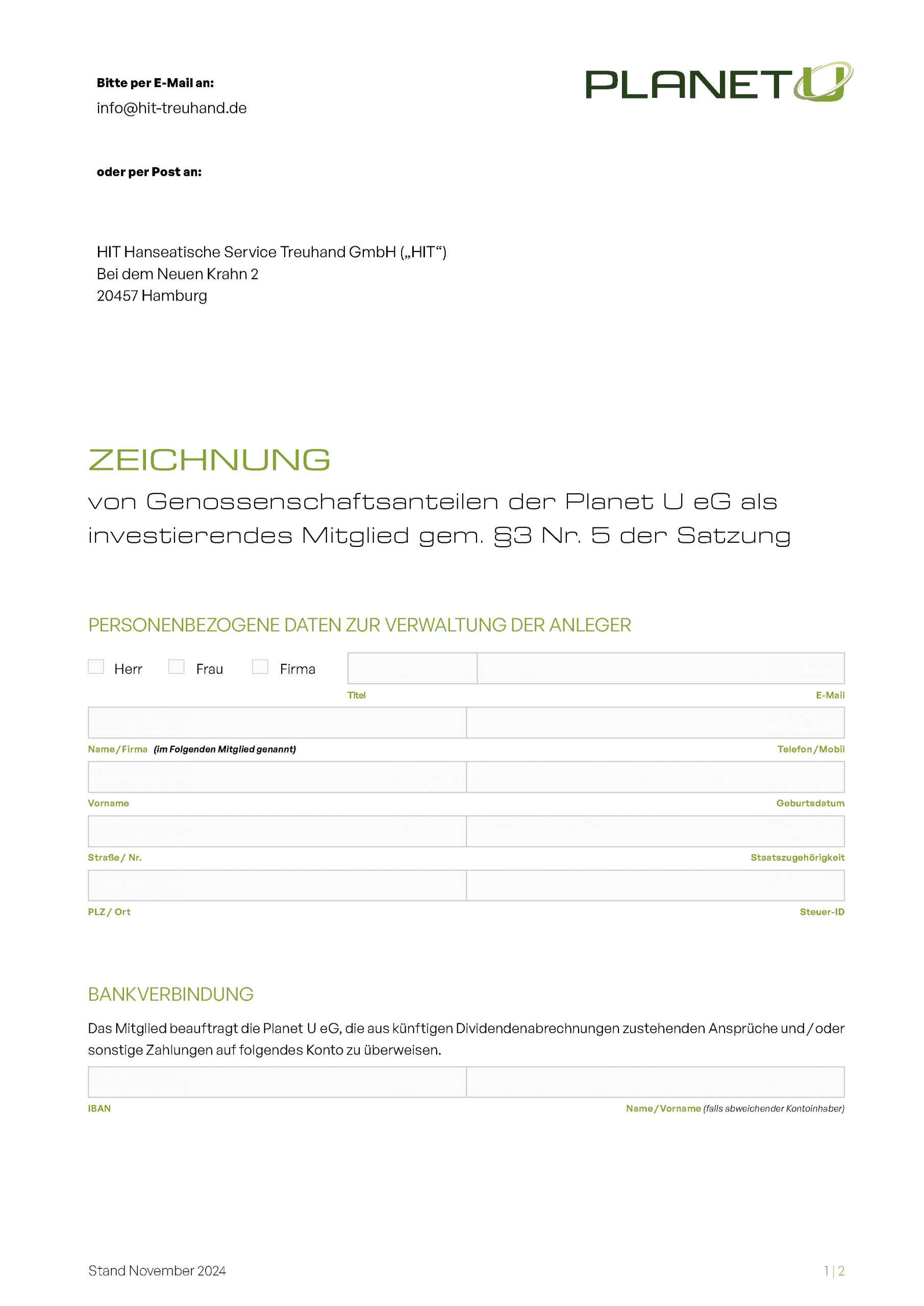 Zeichnungsschein - Erstzeichnung von Anteilen